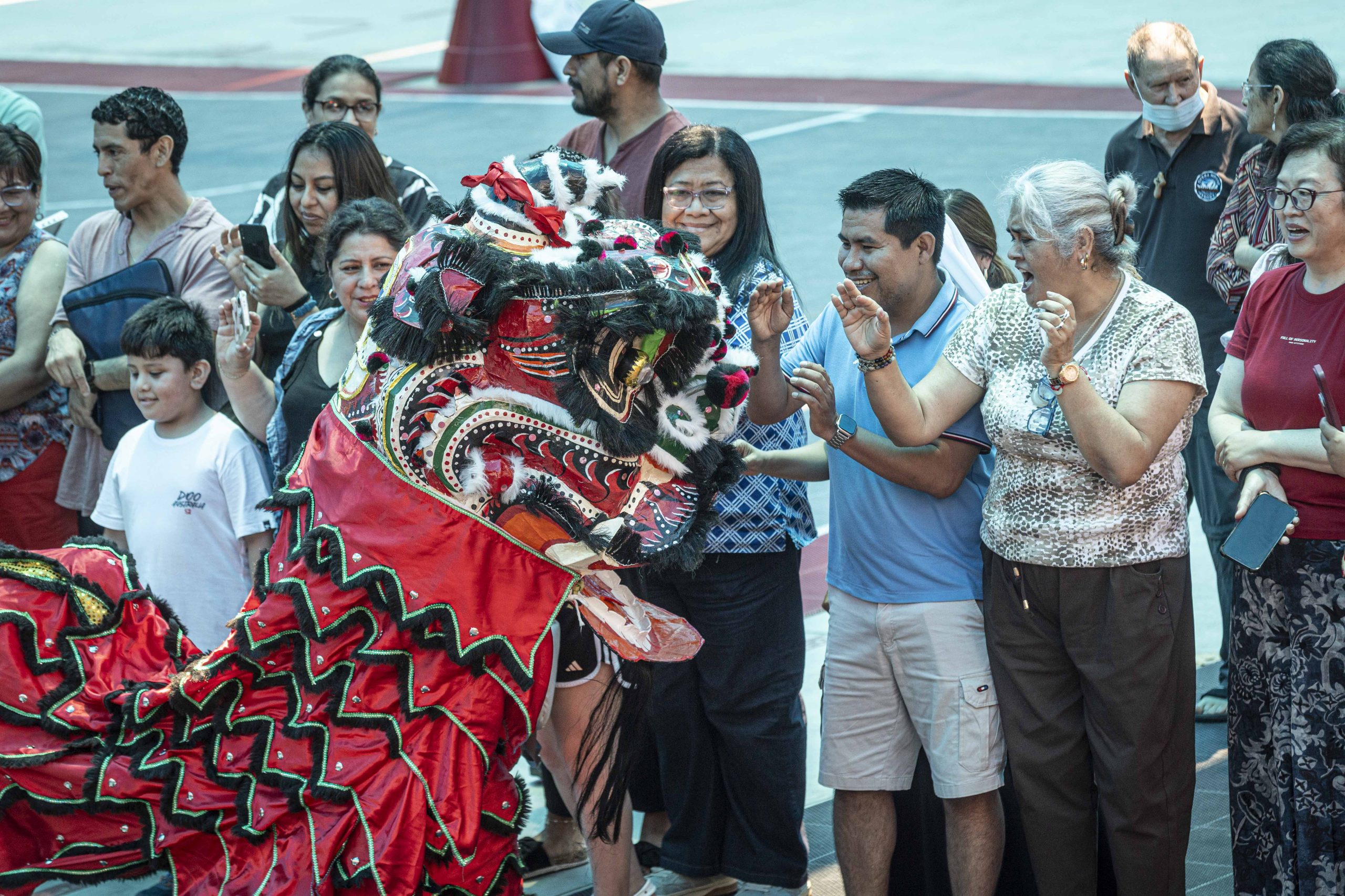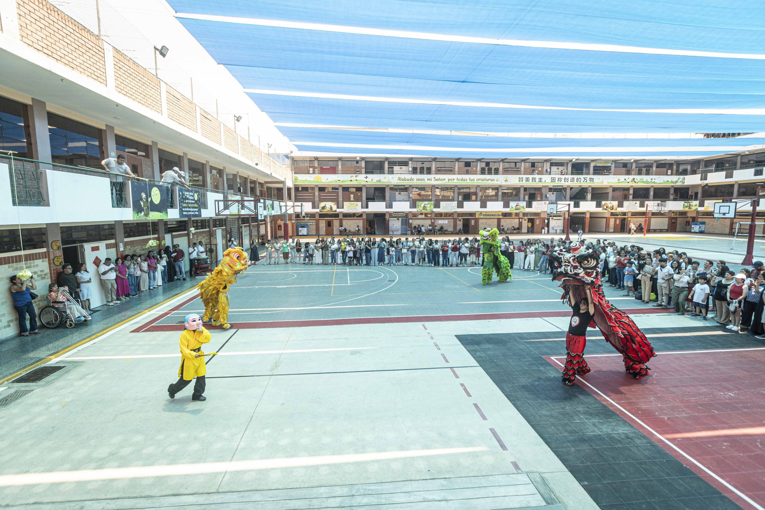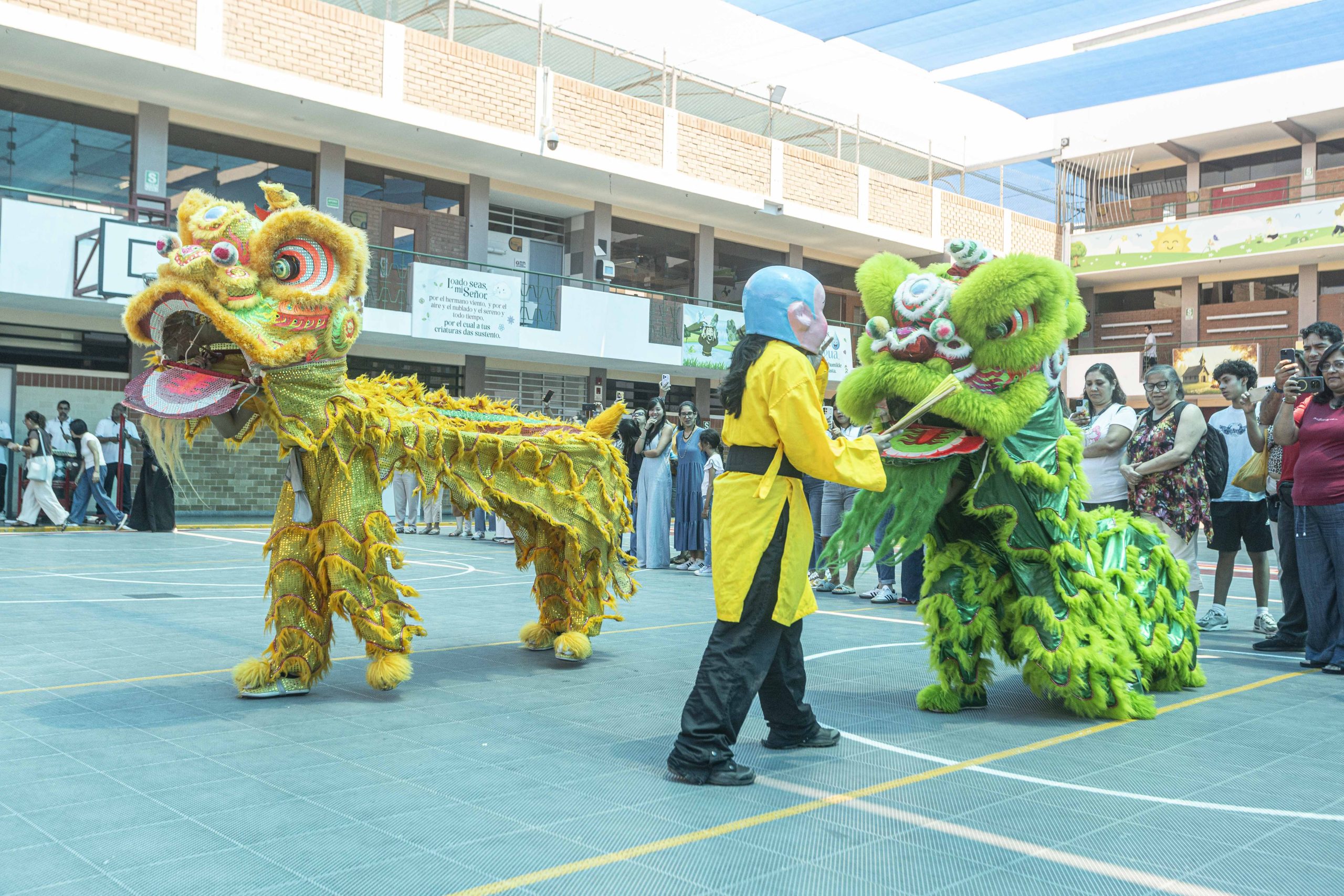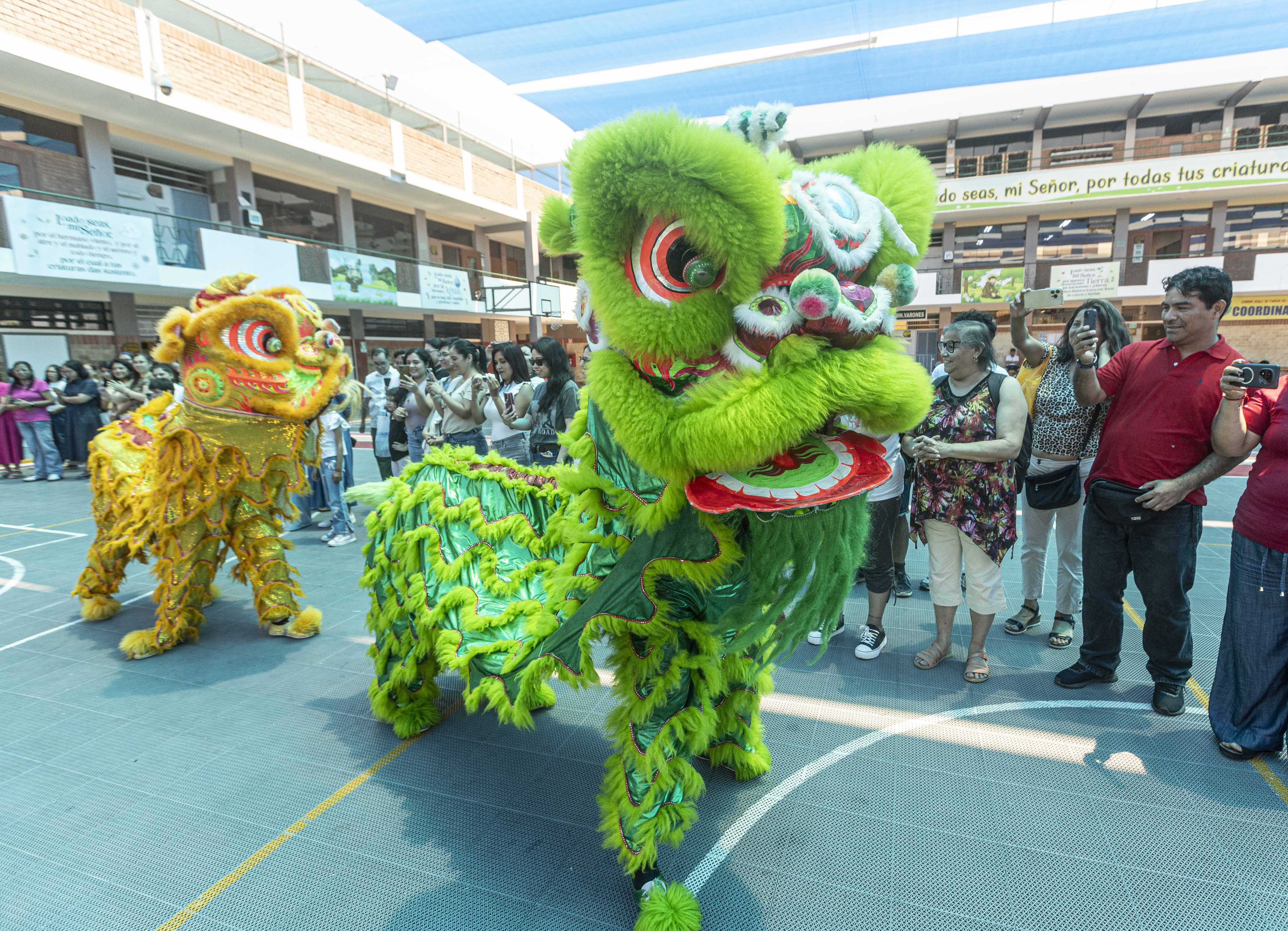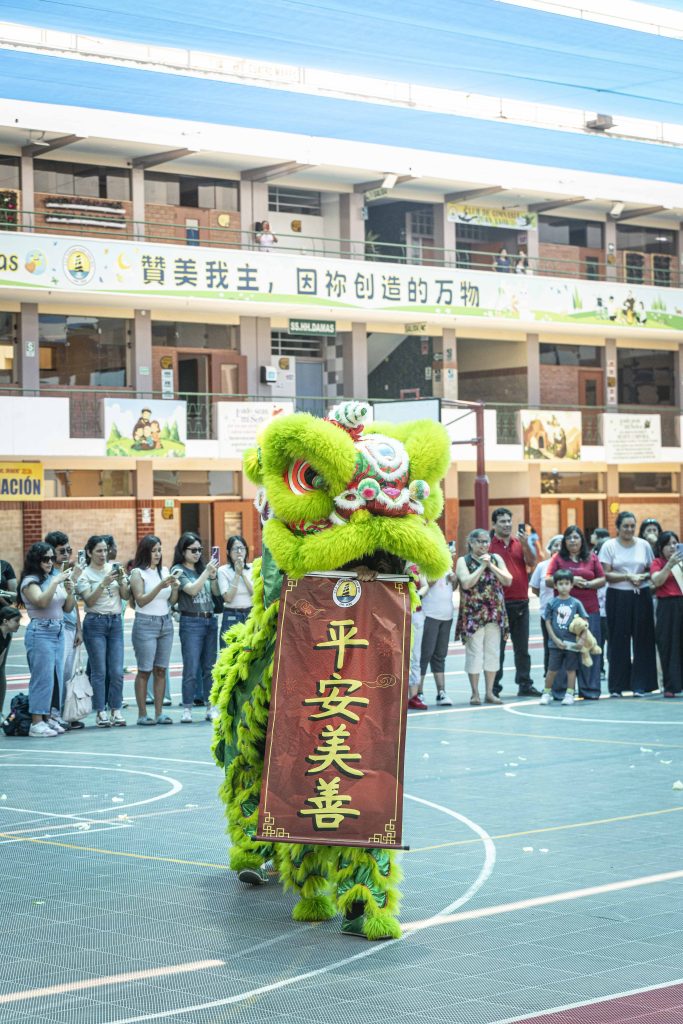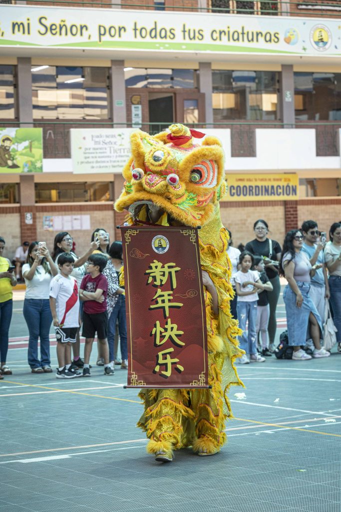 Como ya es tradición en las celebraciones del Año Nuevo Chino, la danza del león ocupó un lugar central. Estudiantes del colegio dieron vida a los leones, ejecutando saltos, movimientos rítmicos y coreografías al compás de los tambores, despertando el entusiasmo de la comunidad asistente.